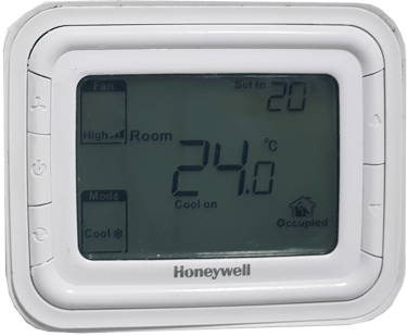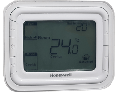 HONEYWELL THERMOSTAT -Voltage 230V AC (commonly called 220V) system in the UAE to a low-voltage 24V AC smart thermostat requires specific conversion components and is a job best handled by a professional to ensure safety and compliance. You cannot directly connect a 24V thermostat to a 230V system.